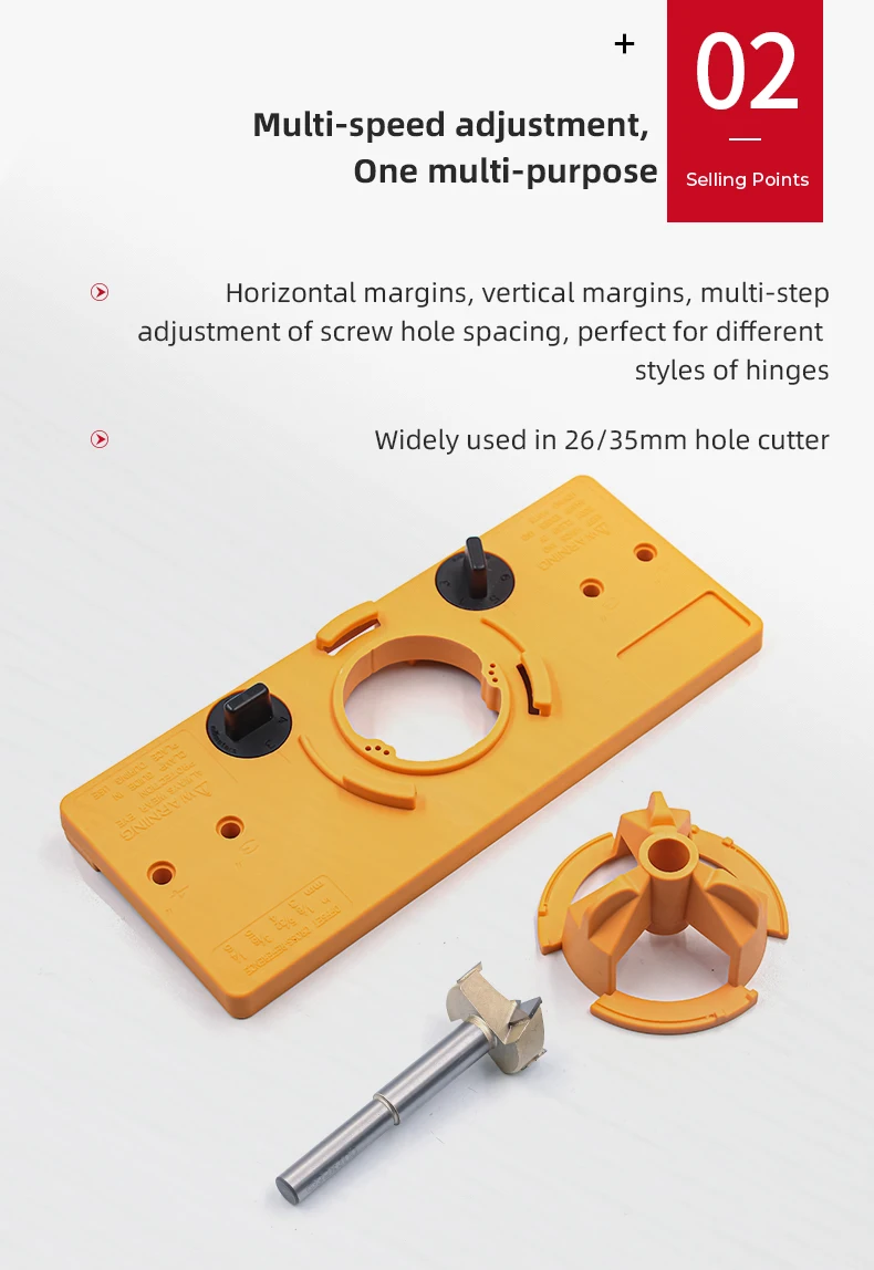 | اسم المنتج | Temax Hinge Cup Guide Template حفر حفرة الفتح لـ 35 مللي متر / 26 مللي متر كوب قطر الهدايا KP02 |